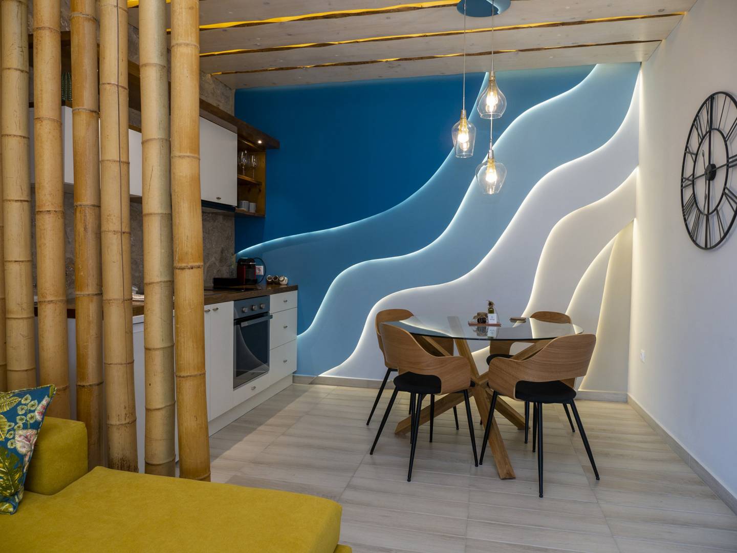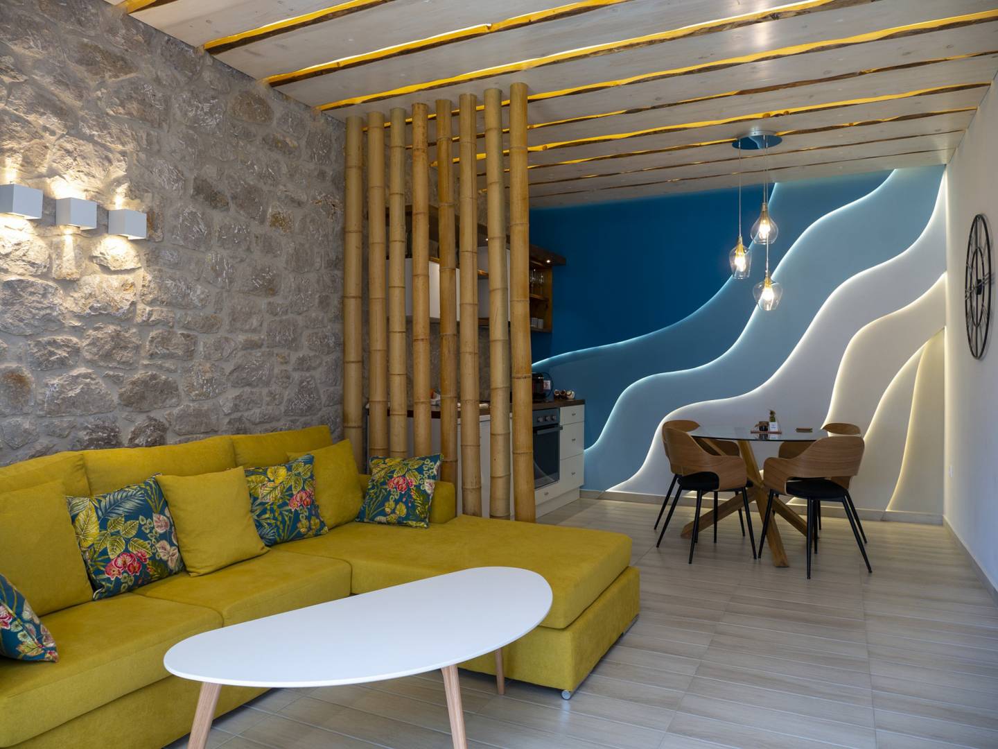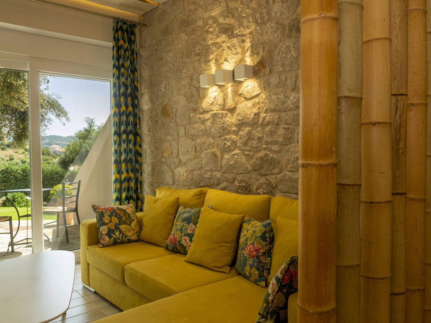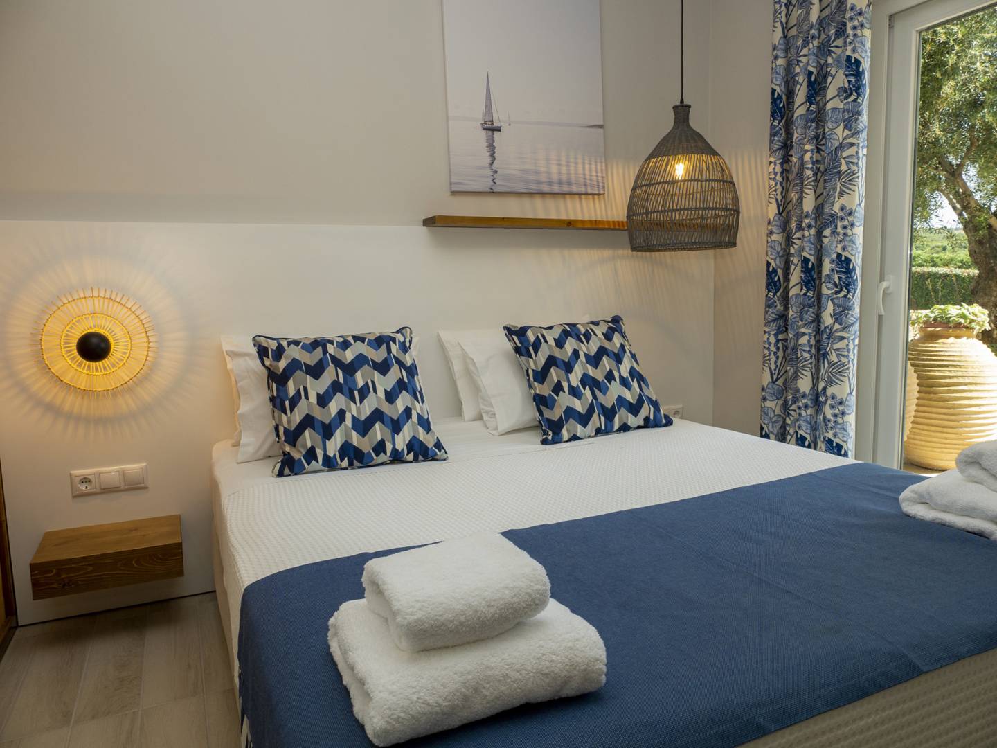Our “ground level 2” apartment is a spacious and modern accommodation option that offers two comfortable bedrooms with double beds and a living area with a sofa bed that can accommodate additional guests. The apartment features two bathrooms, one of which is en-suite, and a fully-equipped kitchen that provides all the necessary amenities for a self-catering stay. The apartment's design is characterized by the use of natural materials such as wood and stone, creating a warm and welcoming atmosphere. With its own private terrace, this apartment offers the perfect spot for guests to relax and enjoy the beautiful surrounding views.