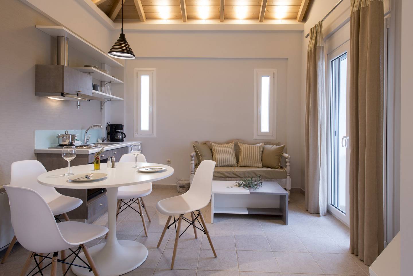 “Residence” Apartment is a beautiful and spacious accommodation located on the first floor of our complex. It features a cozy bedroom with a comfortable double bed, a well-equipped kitchen and a comfortable living area with a sofa bed. The apartment also boasts a spacious loft that can sleep up to three guests on a double and a single bed.