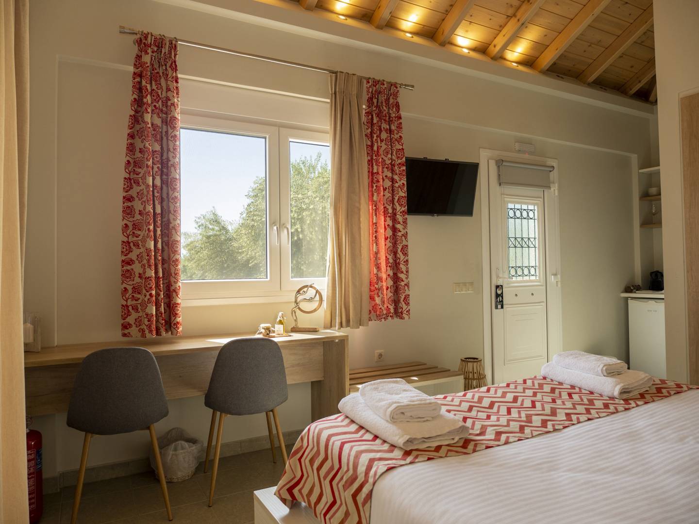 Our “single bedroom” studio apartment is perfect for solo travelers or couples seeking a cozy and comfortable space. It features a comfortable double bed, a fully equipped kitchenette, and a private bathroom with all the necessary amenities. The apartment also has a spacious balcony with a stunning view of the sea or the surrounding mountains. Designed with your comfort in mind, our studio apartment is air-conditioned and equipped with high-speed internet to keep you connected throughout your stay.